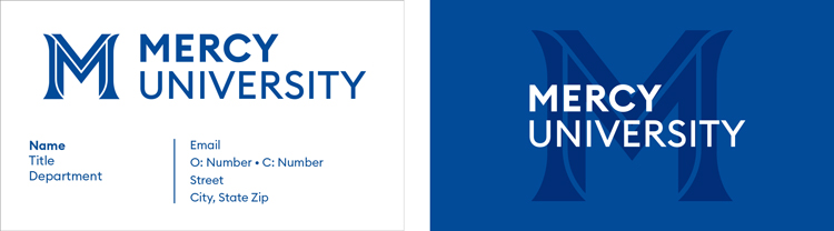 Business cards come in a box of 100 @$35, a box of 250 @$50, or a box of 500 @$70. The business cards also come in two variations for the back of the cards: plain white, or Mercy branding on a blue background.