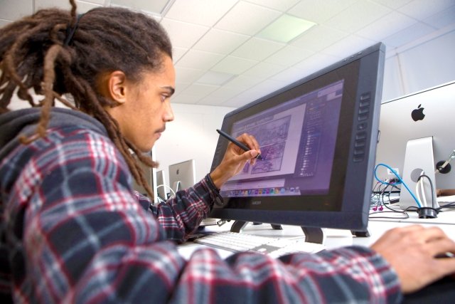 We have two digital design and animation studios, and a traditional studio for drawing, painting and design. All stations in our digital studios are equipped with Cintiq Interactive Pen Displays.