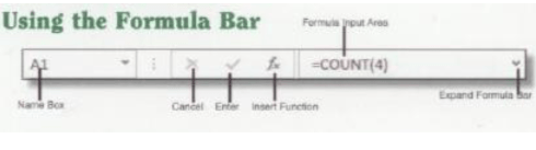 - Status Bar – contains worksheet information and shortcuts.